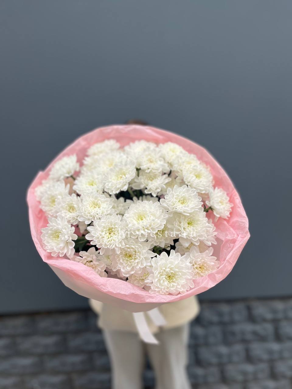 хризантема кустовая - 5шт., лента, нежное оформление.