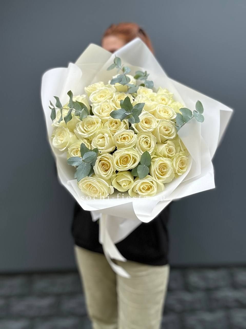 15 белых роз пудра