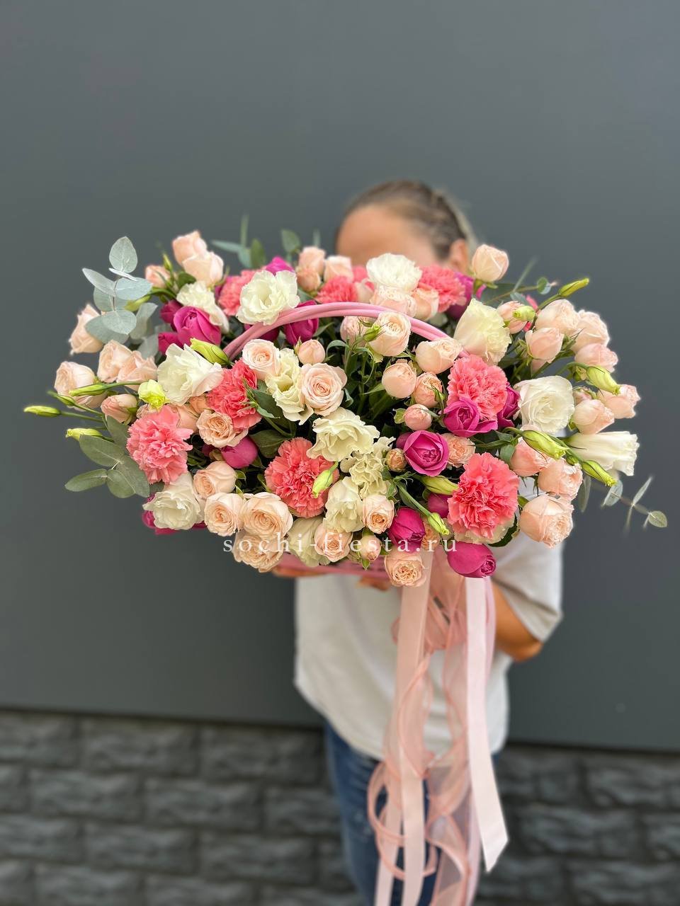 Этот пышный авторский букет в красно-розовых тонах представляет собой гармоничное сочетание страсти и нежности.