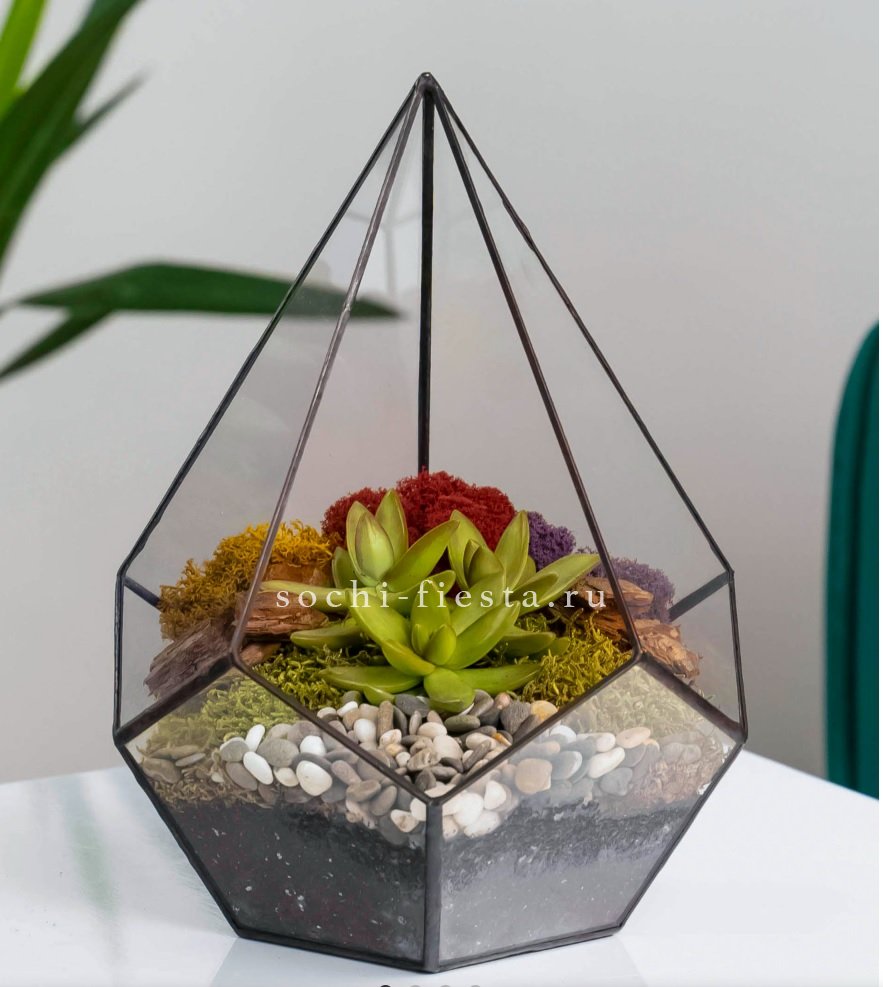 флорариум в кашпо Капля идеален для подарка искушенным и практичным личностям. Растение неприхотливо в уходе, композиция стильно смотрится в любом пространстве:)