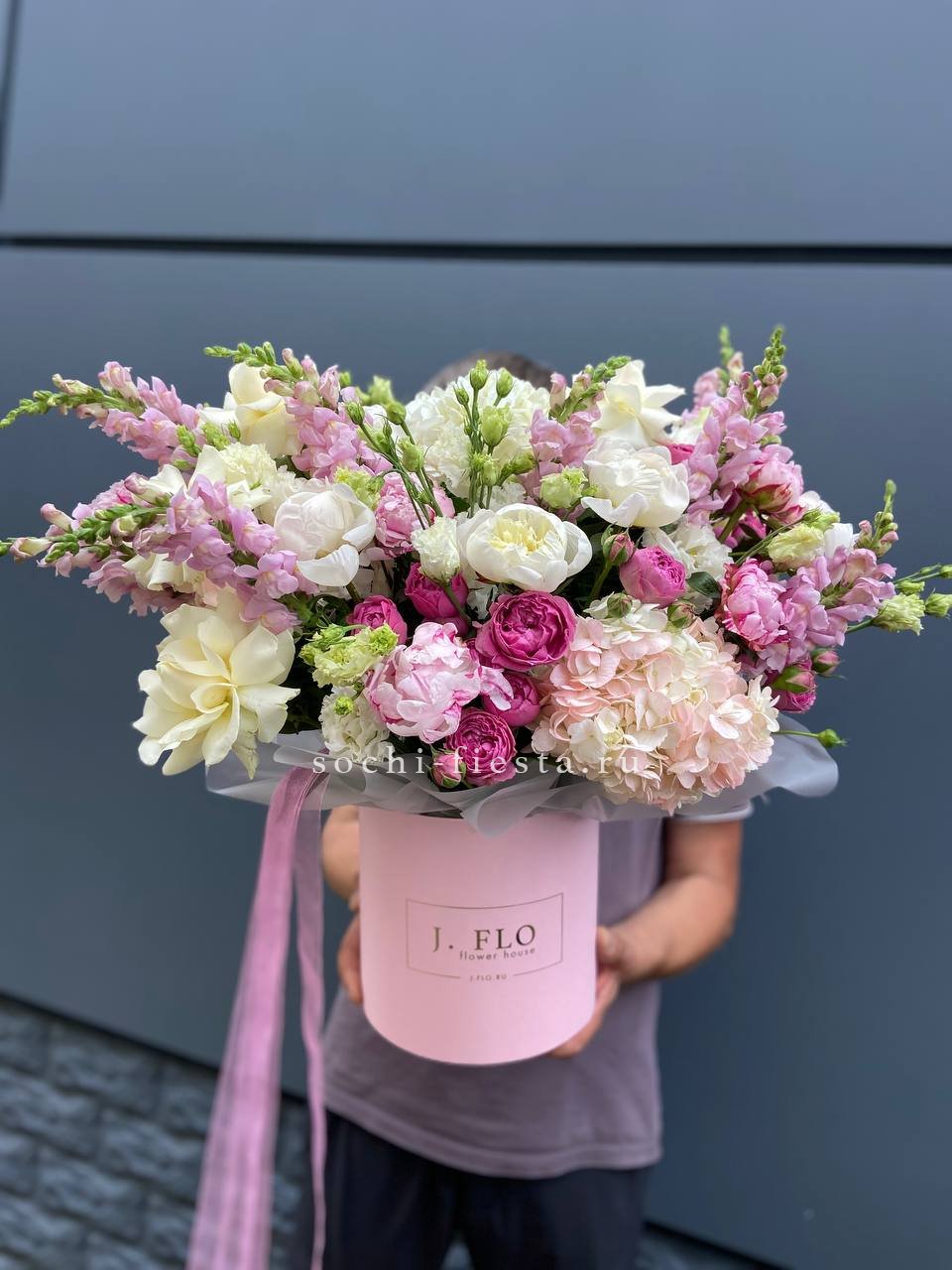 Дизайнерский цилиндр с пионами "Саманта"