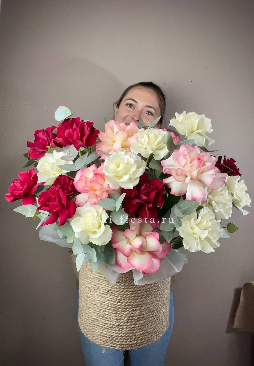 Для заказа товара "35 французских роз микс в джутовом боксе" с доставкой в Ярославле нажмите в корзину