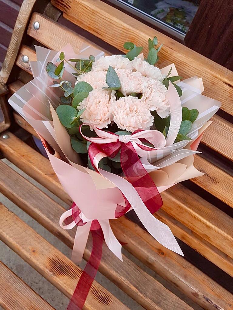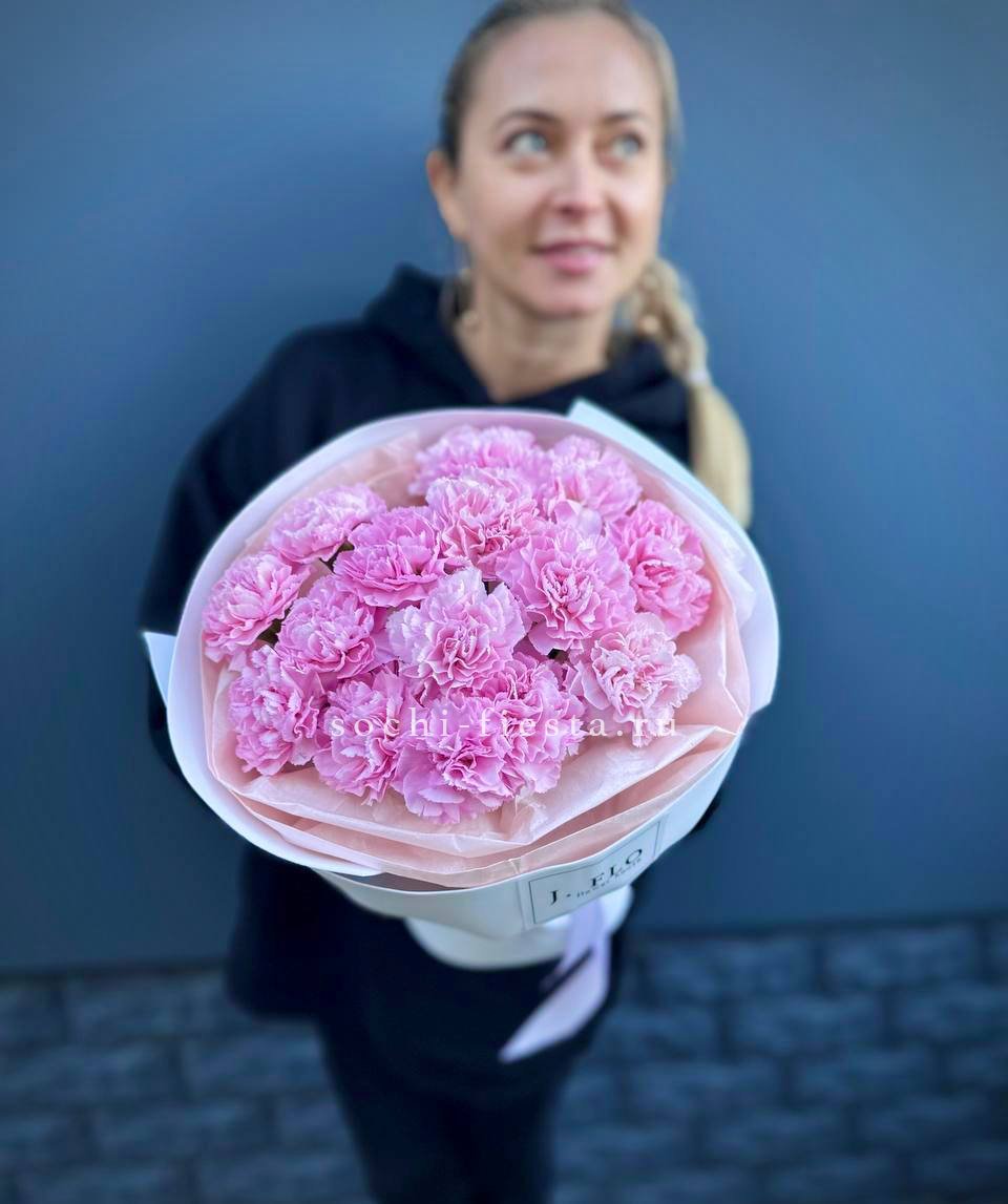 диантусы 15шт, тишью, упаковка, лента.