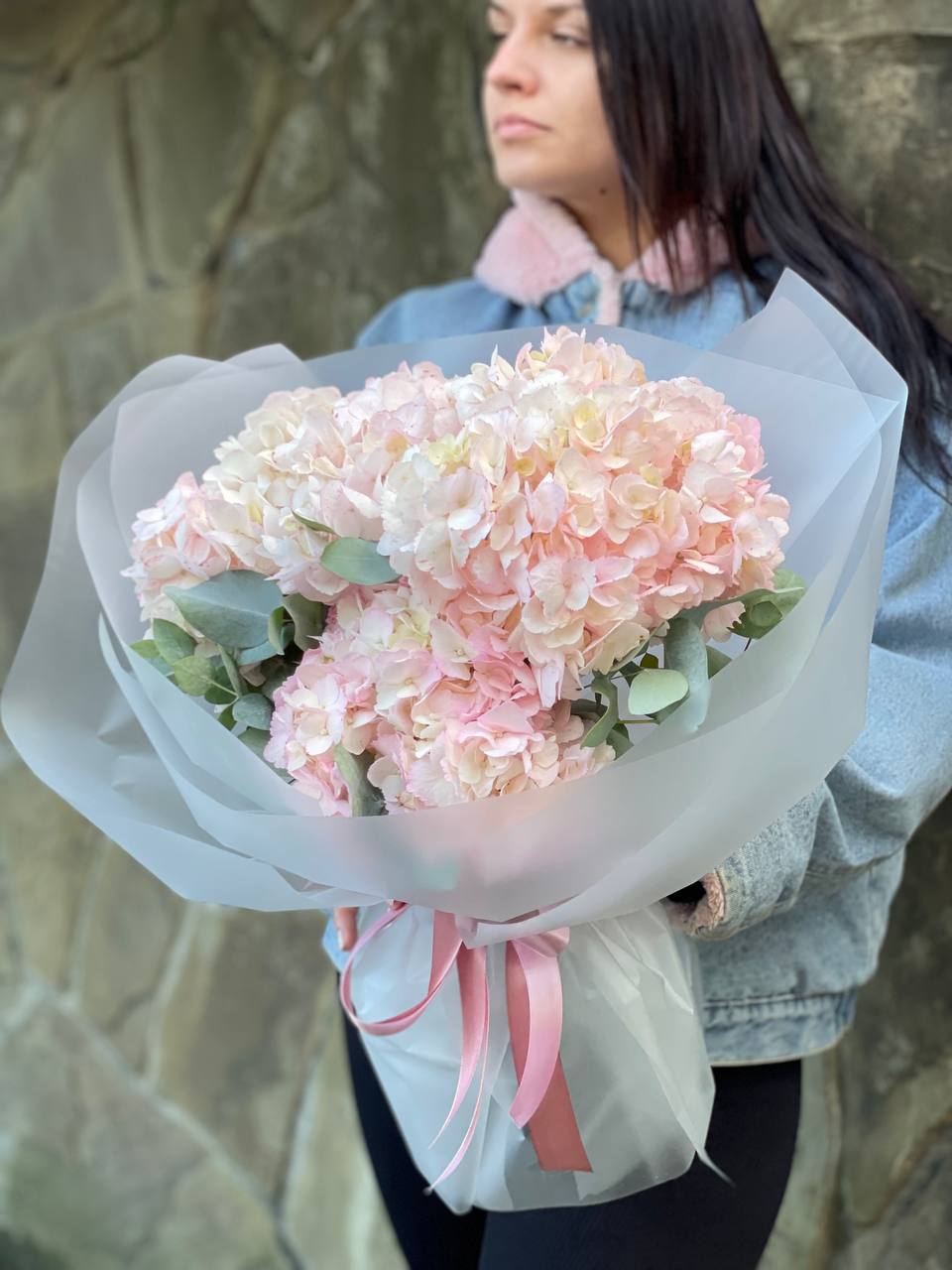 гортензия - 3 шт., лента, дизайнерская упаковка.
