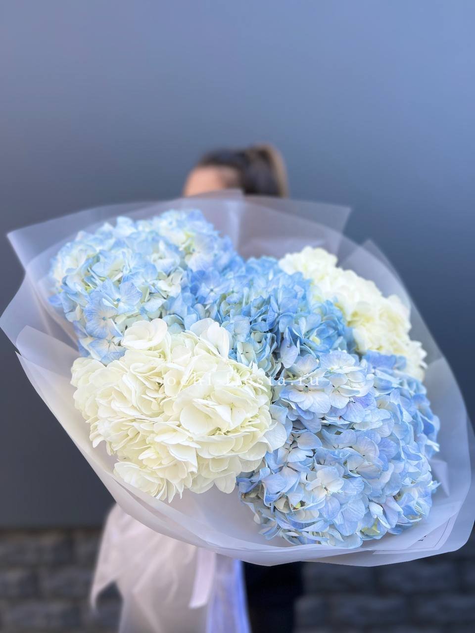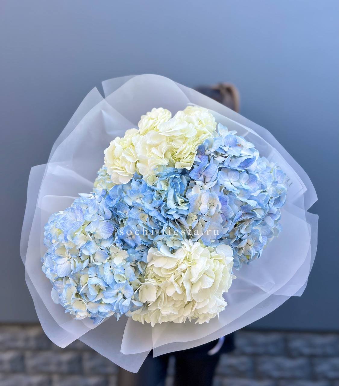 гортензия 15 шт., лента, дизайнерская упаковка.