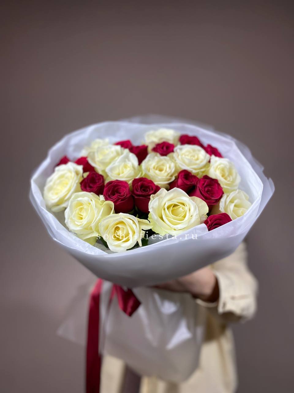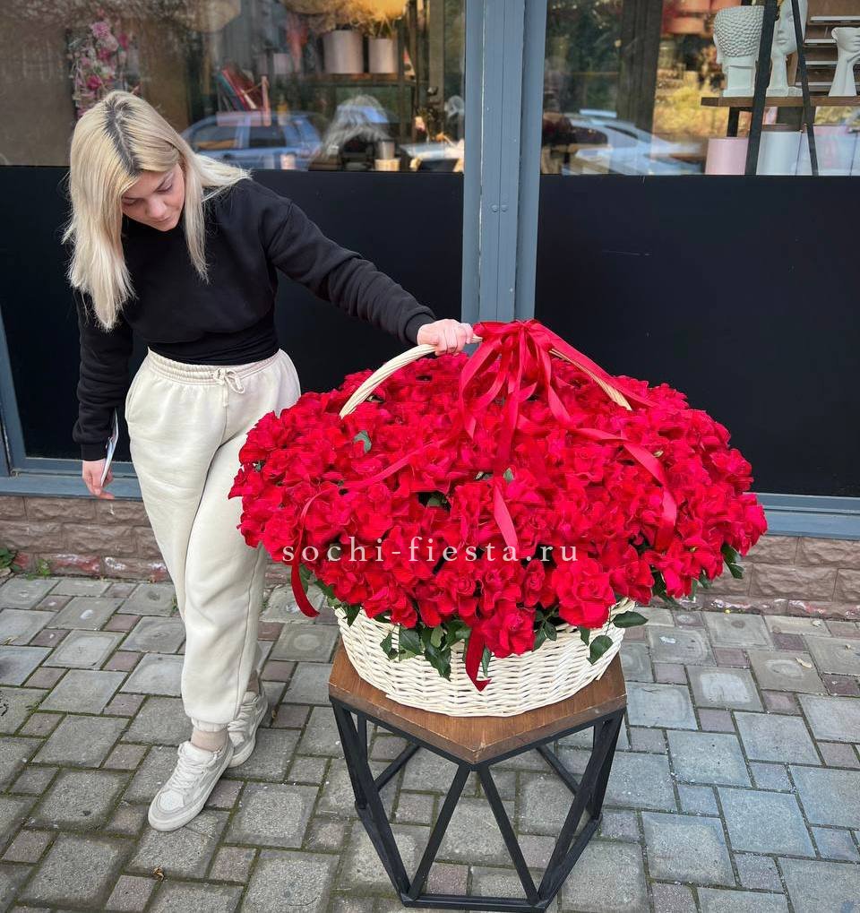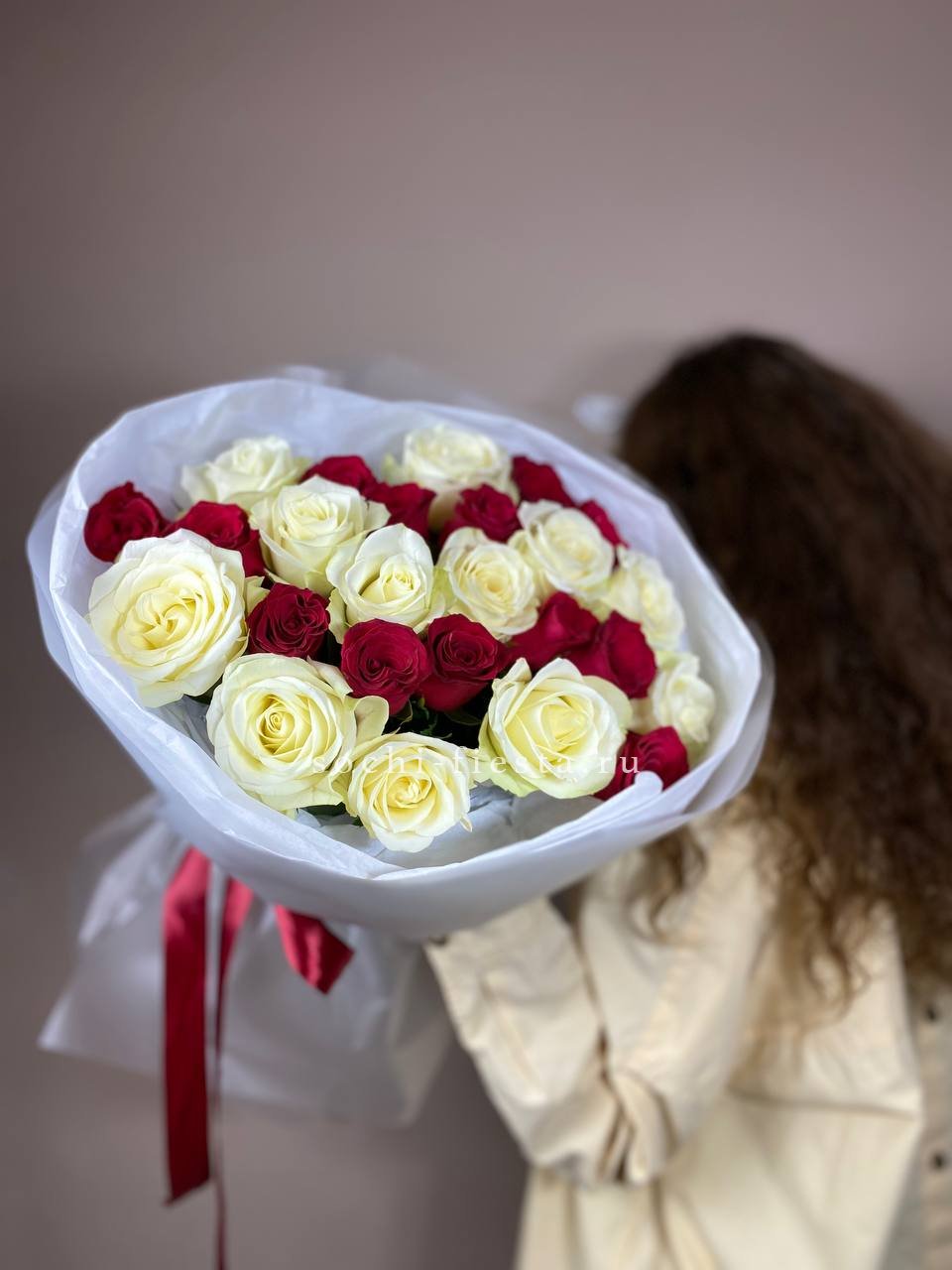 33 красных роз, лента, дизайнерская упаковка Вы можете выбрать желаемое количество цветов данном в букете.