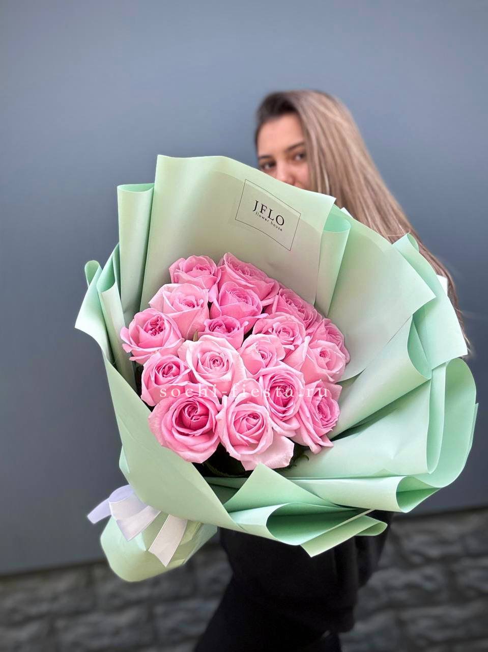Семнадцать розовых бутонов в лаконичной крафтовой обертке. Классика, которая работает в любой ситуации и не требует дополнительных объяснений.