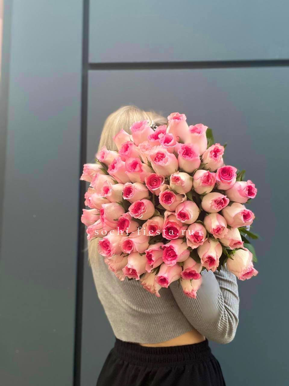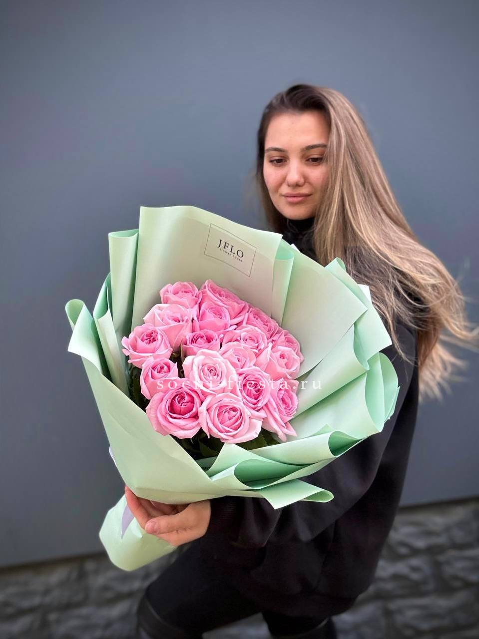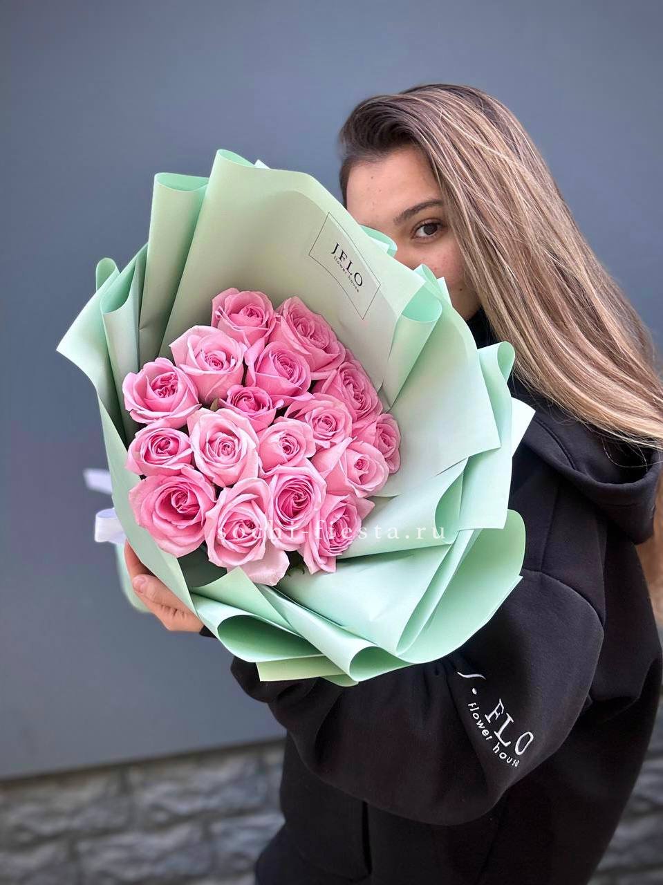 розовые розы - количество на выбор, авторская упаковка, лента.