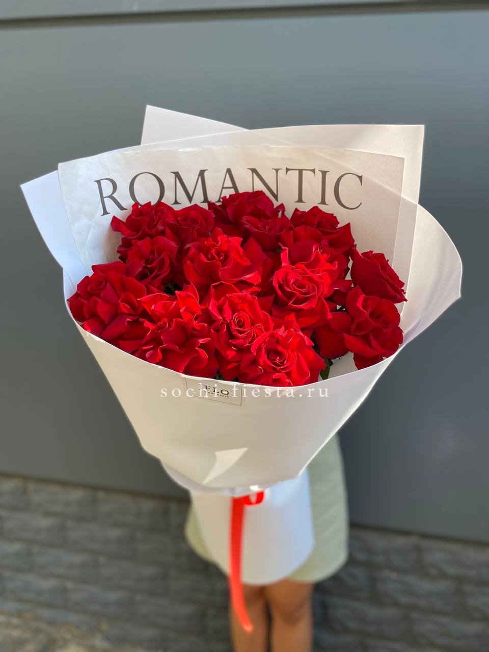 15 красных высоких роз, оформление.