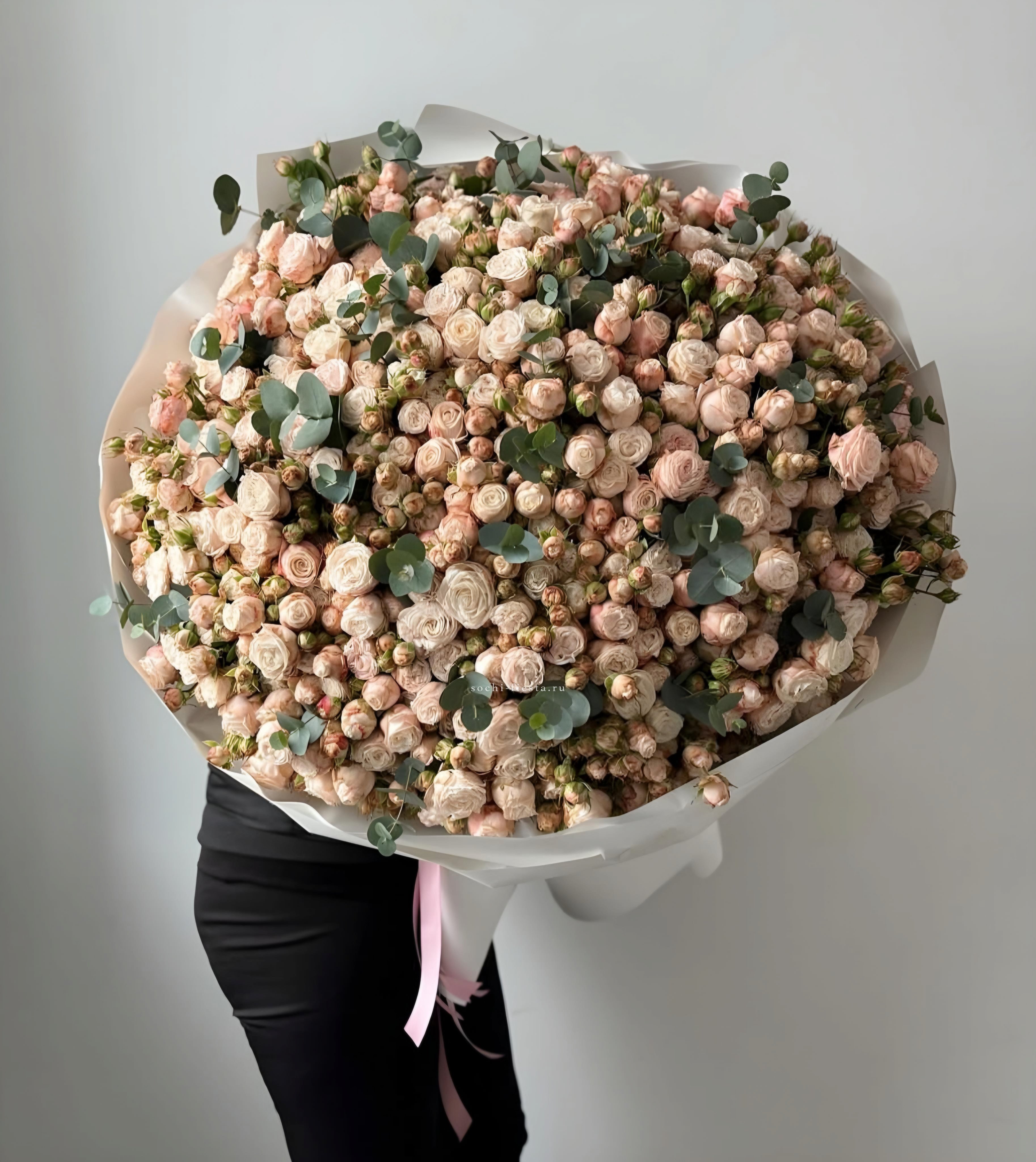 пионовидные розы сорта Бомбастик - 201 шт., дизайнерское оформление По желанию заказчика, композицию можно оформить в корзину.